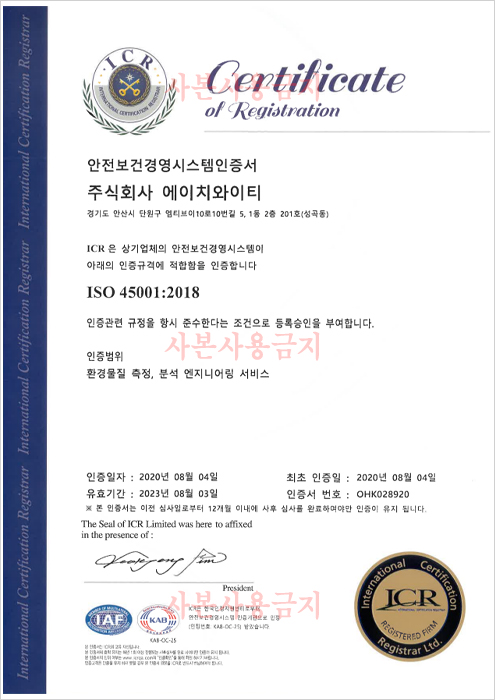 ISO 45001 인증서